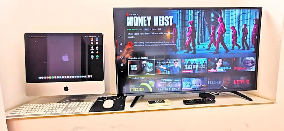 The twin room provides a dining area, a computer, as well as a private bathroom boasting a shower and a hairdryer. The fully equipped kitchenette has a stovetop, a refrigerator, kitchenware and a microwave. The twin room offers air conditioning, a private entrance, a tea and coffee maker, a seating area, as well as a flat-screen TV with streaming services. The unit has 2 beds.
